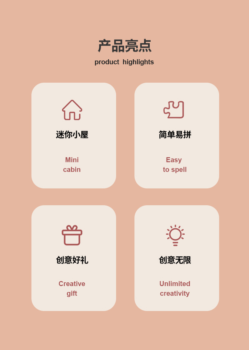 廣州弘達(dá)DIY小屋廠家提供的DIY模型玩具產(chǎn)品有DIY小屋、自制小屋模型、DIY小屋別墅、木制拼圖、迷你小屋、迷你娃娃屋、家居裝飾品、古風(fēng)建筑模型、圣誕小屋模型、微縮房子定制、定制小屋、手工沙盤(pán)制作、房子模型定制、拼裝玩具定制、禮品定制、木制益智玩具批發(fā)、3D拼裝玩具、房子模型設(shè)計(jì)、沙盤(pán)模型材料、DIY小屋配件材料、日式房子批發(fā)、創(chuàng)意模型定制等。